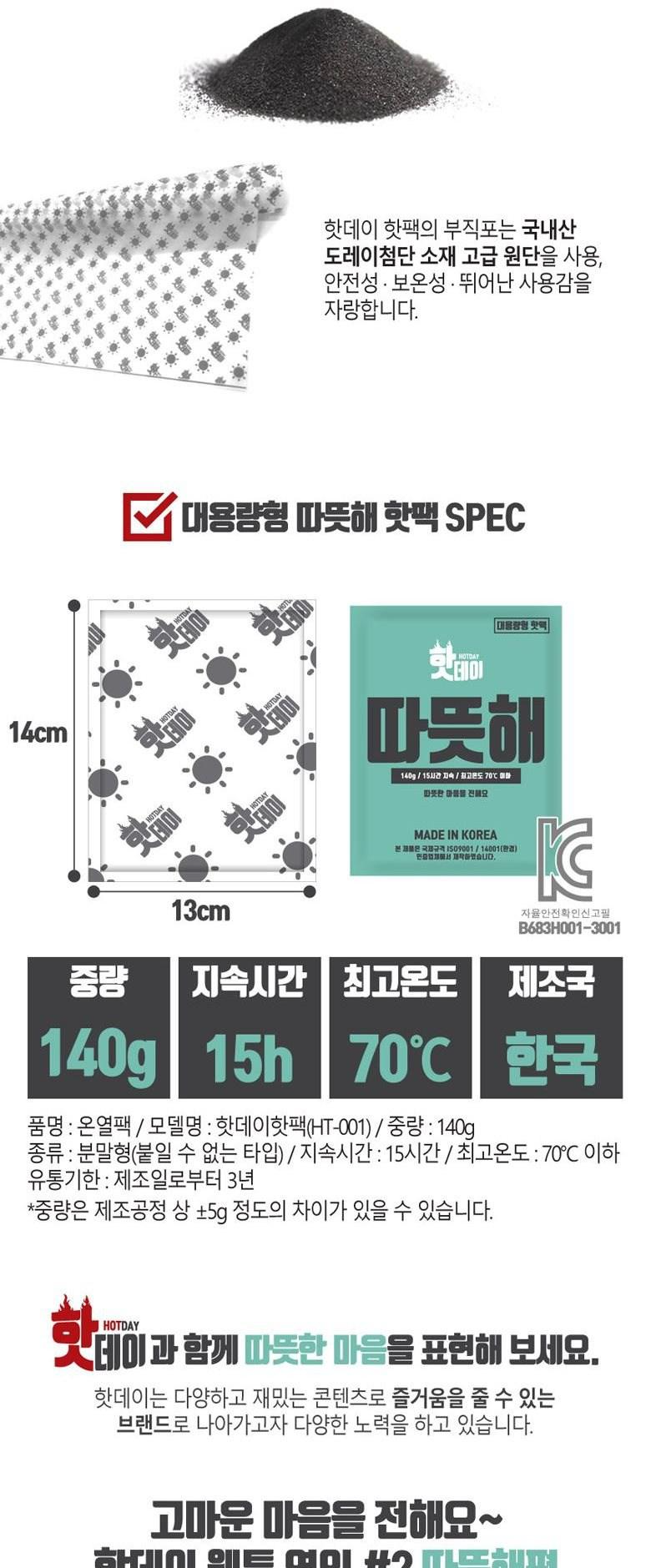 1.핫데이 따뜻해 핫팩 대용량 140g
